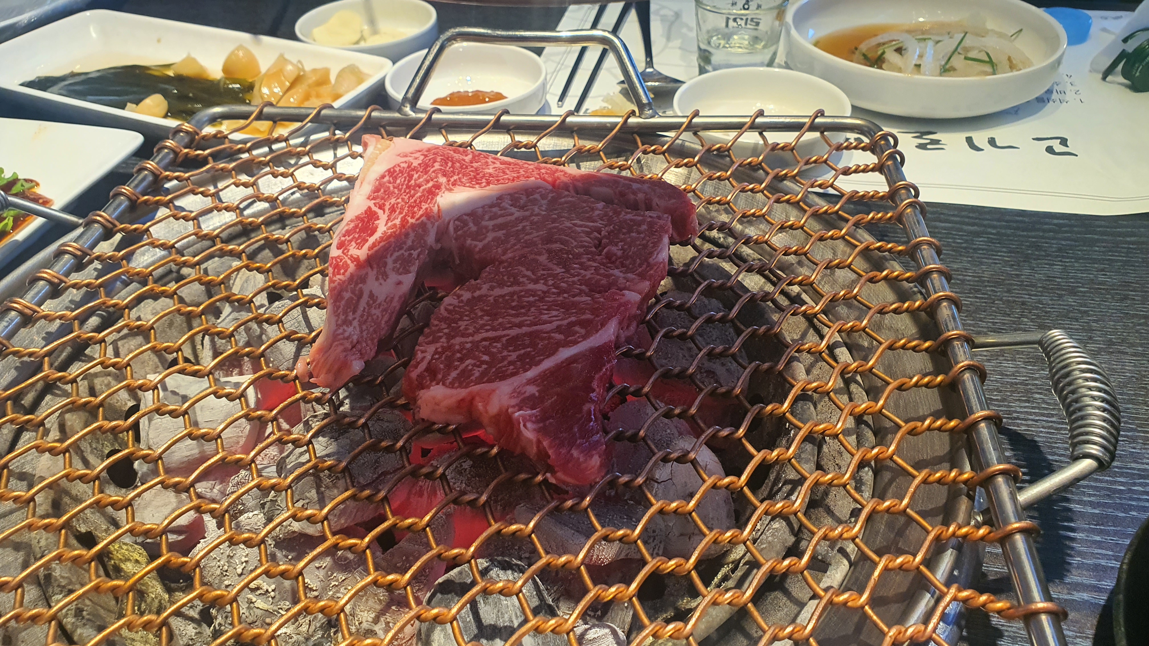 숯불에 소고기 구워먹을수 있다. 좋은 고기만 쓴다고 하는데 정말 고기가 질기지 않고 부드러운 좋은 고기였다!!