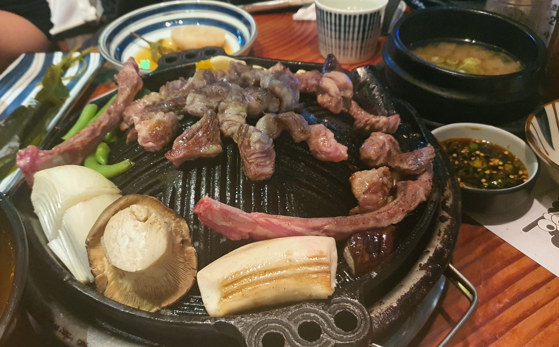 양고기와 야채들을 구워먹을 수 있다. 고기를 구워주시기 때문에 고기 못구워도 안심하고 먹을 수 있다.