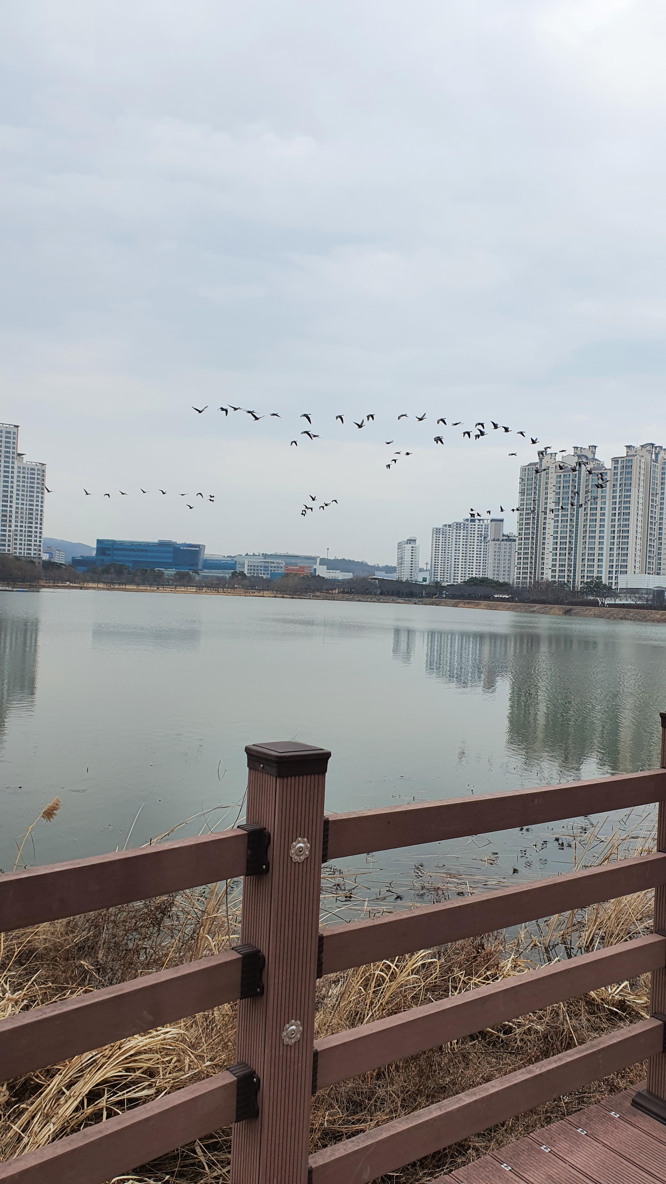 저수지에 새들이 많이 살고 있어서 새들이 날아다니는걸 자주 볼수있다